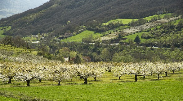 Nous rejoignons ensuite le village niché au fond de la vallée et dominé par les falaises de calcaire.